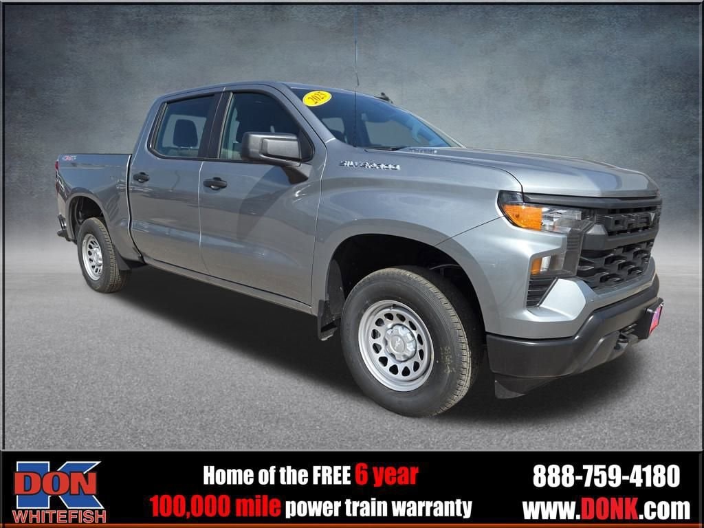 Priced below KBB Fair Purchase Price! 8-Speed Automatic, 4WD, Black Cloth. Sterling Gray Metallic 2025 Chevrolet Silverado 1500 WT 4D Crew Cab 4WD 8-Speed Automatic 2.7L I4 Turbocharged DOHC 16V LEV3-SULEV30 310hp Price includes: $1000 - Chevrolet Select Market Bonus Cash. Exp. 03/02/2026 $1000 - GM Bonus Cash. Exp. 03/02/2026 $3000 - Chevrolet Consumer Cash Program. Exp. 03/02/2026