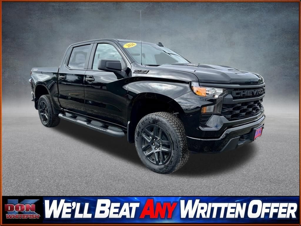 Priced below KBB Fair Purchase Price! 8-Speed Automatic, 4WD, Black Cloth. Black 2026 Chevrolet Silverado 1500 Custom Trail Boss 4D Crew Cab 4WD 8-Speed Automatic 2.7L I4 Turbocharged DOHC 16V LEV3-SULEV30 310hp Price includes: $1000 - Chevrolet Select Market Bonus Cash. Exp. 04/30/2026 $2000 - Chevrolet Consumer Cash Program. Exp. 04/30/2026