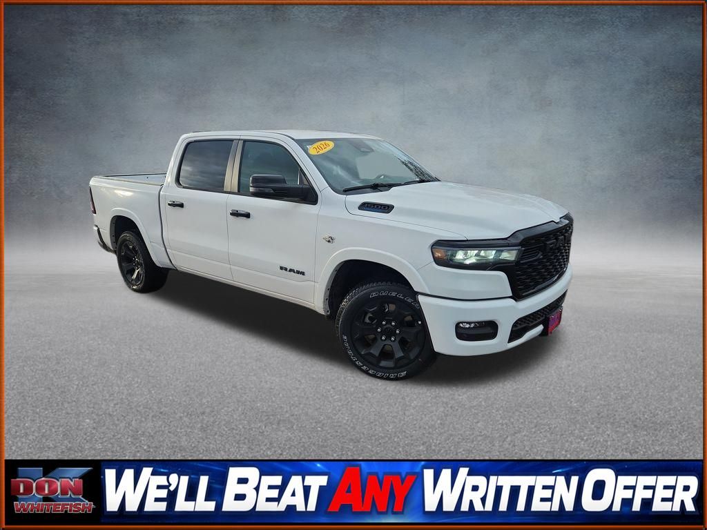 Bright White Clearcoat 2026 Ram 1500 Big Horn/Lone Star 4D Crew Cab 4WD 8-Speed Automatic HEMI 5.7L V8 Multi Displacement VVT eTorque Price includes: $1000 - 2026 West BC Fast Start Engine Retail Bonus Cash . Exp. 03/16/2026 $3500 - 2026 National Retail Consumer Cash . Exp. 03/31/2026